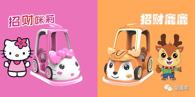 小孩最喜欢的粉红宝贝-招财咪莉、萌呆宝贝-招财鹿鹿,听到这名字就看得出就是移动提款机。招财咪莉有着凯特猫的造型,招财鹿鹿有着萌鹿的造型,这2款宝贝在夜晚带着灯光,额外吸引着小孩的目光。